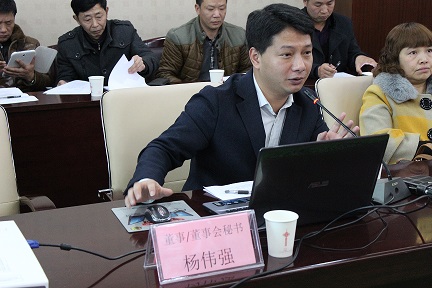 (圖為董事會(huì)秘書楊偉強(qiáng)主持會(huì)議)