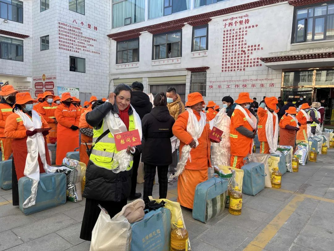 1月27日,日喀則市總工會(huì)在市總工會(huì)大院內(nèi)開(kāi)展了2022年 “三大節(jié)日”送溫暖集中慰問(wèn)活動(dòng) 。日喀則市城市管理和綜合執(zhí)法局副局長(zhǎng)普布出席慰問(wèn)活動(dòng)并向國(guó)策一線環(huán)衛(wèi)員工獻(xiàn)上了潔白的哈達(dá)和慰問(wèn)品。