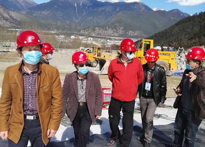 林芝市市政局副局長亞宏來工地查看土工膜鋪設焊接