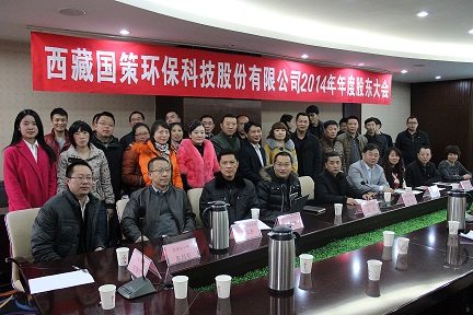西藏國策環(huán)??萍脊煞萦邢薰?014年度年度股東大會(huì)在成都召開,董事會(huì)秘書楊偉強(qiáng)主持會(huì)議。董事長兼總經(jīng)理陳鴻、副董事長范津濤、副總經(jīng)理幸川、財(cái)務(wù)總監(jiān)趙永花、證券部經(jīng)理張麗等公司董事及核心成員出席本次會(huì)議。