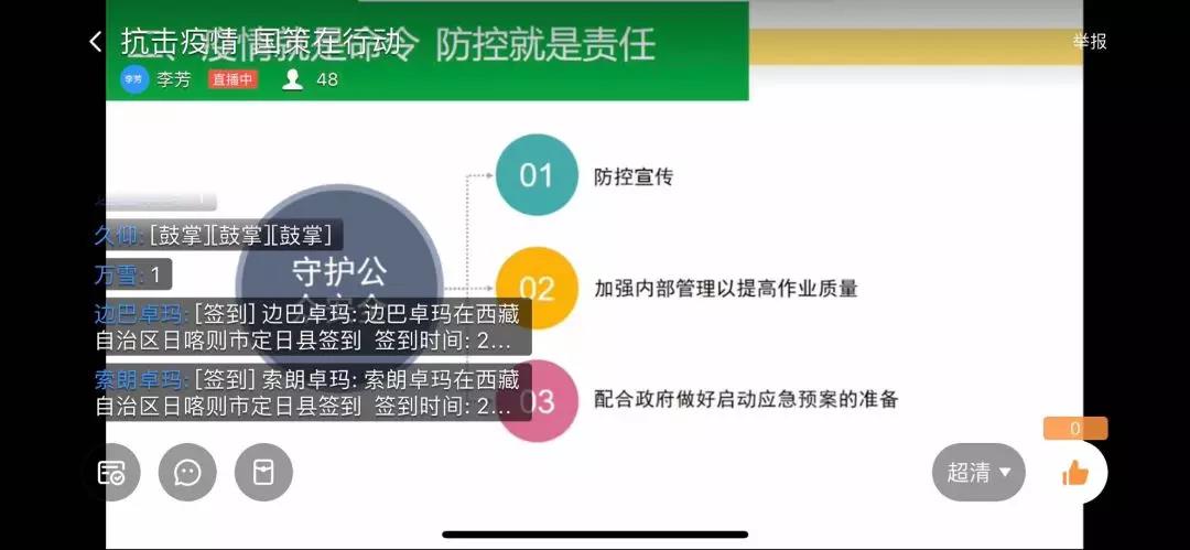 以“抗擊疫情,國策環(huán)保在行動”為主題,公司防疫小組定期對各分公司管理人員展開了線上的直播宣傳,對疫情防護(hù)、管理進(jìn)行指揮安排。對奮戰(zhàn)一線的管理人員、工作人員表示贊揚與鼓勵。在疫情攻堅戰(zhàn)中,公司所有人員包括管理人員萬眾一心在特殊時期堅守崗位,公司時刻與員工一同戰(zhàn)斗!