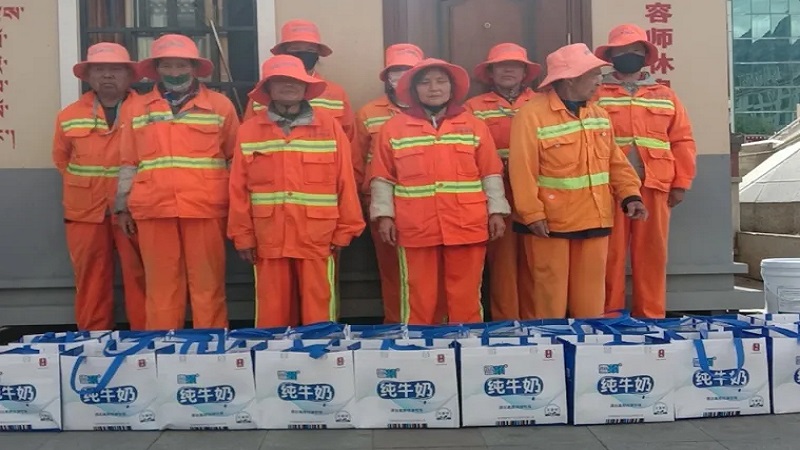 為感謝他們多年來(lái)的辛勤付出,國(guó)策環(huán)保林芝分公司相關(guān)人員向作業(yè)在一線的環(huán)衛(wèi)工人以每人80元的標(biāo)準(zhǔn),發(fā)放了當(dāng)?shù)靥禺a(chǎn)雪頓純牛奶、嘎瑪雞蛋、鹽等慰問(wèn)品,共計(jì)274份。