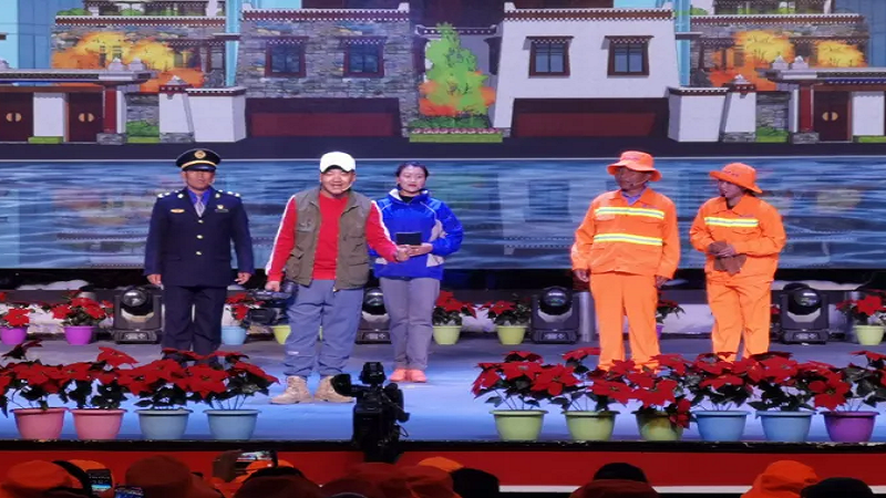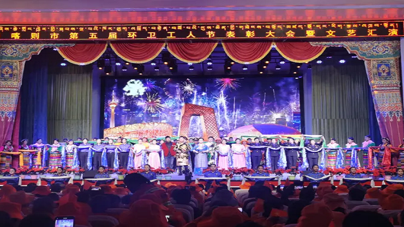 為慶祝“環(huán)衛(wèi)工人節(jié)”這一個(gè)平凡而偉大的節(jié)日,鼓舞全體環(huán)衛(wèi)工人的士氣,10月26日晚,由日喀則市委、市政府主辦,市城市管理和綜合執(zhí)法局、市文化局承辦的主題為“頌現(xiàn)代化新西藏 展環(huán)衛(wèi)工新風(fēng)采”第五屆環(huán)衛(wèi)工人節(jié)表彰大會(huì)暨文藝匯演在日喀則市職業(yè)技術(shù)學(xué)院舉行,國(guó)策環(huán)保日喀則分公司作為參與方積極參與了此次活動(dòng)。