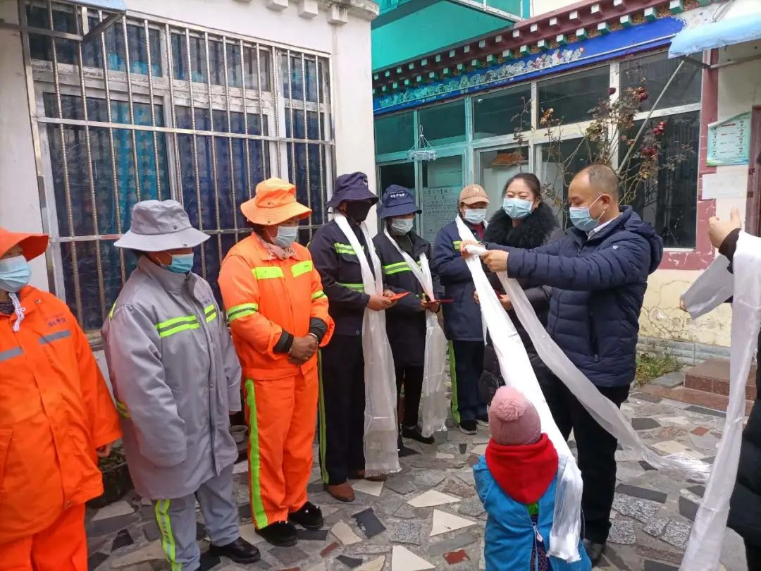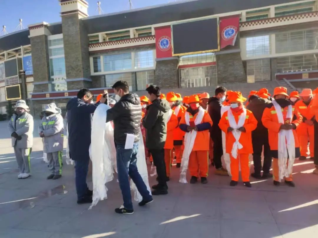 1月7日,為表達(dá)對(duì)國(guó)策一線環(huán)衛(wèi)工人的關(guān)懷和祝福,林芝市慈善總會(huì)在工布公園工布廣場(chǎng)開(kāi)展了“寒冬送溫暖 致敬城市美容師”送冬衣活動(dòng)。活動(dòng)現(xiàn)場(chǎng),市慈善總會(huì)工作人員為50名環(huán)衛(wèi)工人敬獻(xiàn)哈達(dá),并送上慰問(wèn)冬衣。