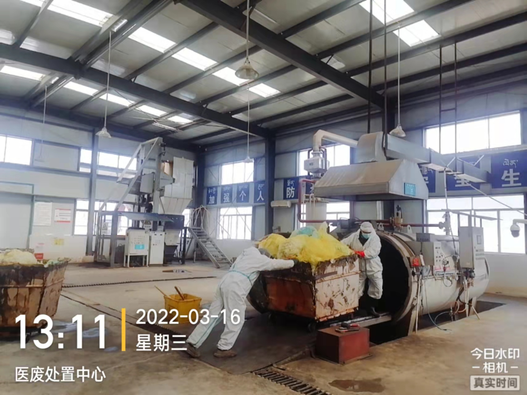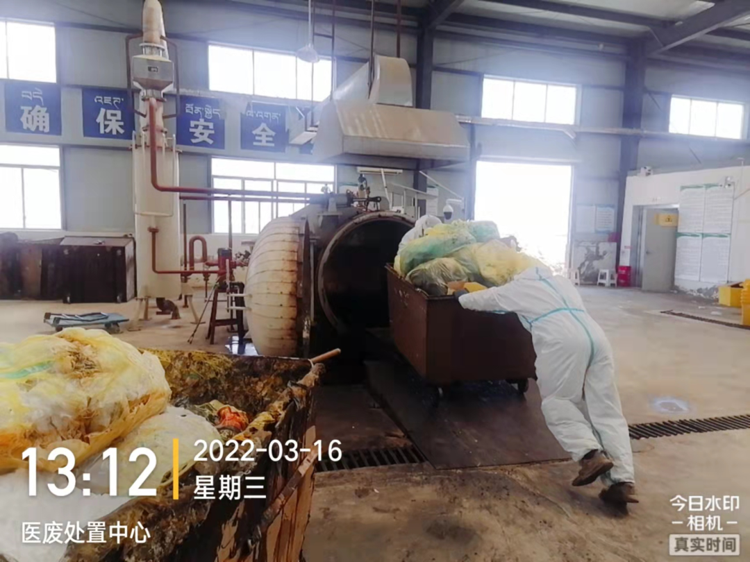 3、收集完畢后,立即將新冠相關(guān)醫(yī)療廢物轉(zhuǎn)運(yùn)至林芝市醫(yī)廢處置中心,進(jìn)入林芝市醫(yī)廢處置中心后立即對(duì)新冠疫情相關(guān)醫(yī)療廢物進(jìn)行高溫蒸煮消毒處理,做到日產(chǎn)日清。