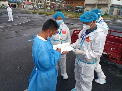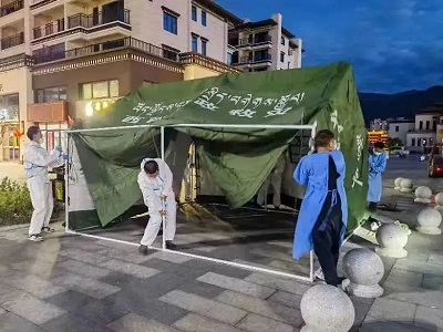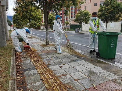 (國(guó)策環(huán)保林芝分公司工作人員對(duì)低風(fēng)險(xiǎn)區(qū)域進(jìn)行生活垃圾清運(yùn))