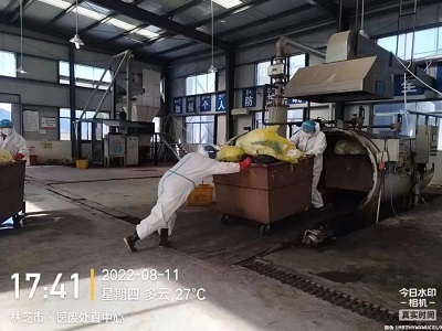 (國(guó)策環(huán)保林芝分公司工作人員對(duì)醫(yī)療廢物進(jìn)行安全處置)